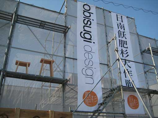 | 2009年11月、日南市にて行われたobisugi designの具の発表「日南飫肥杉大作戦」スギダラ館の外観 | |||||||||||||