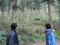 | 割り箸工場を見学した後、原木市場でのセリに参加。そして、吉野林業の発祥の地である川上村へ。樹齢200年を超える吉野杉の巨木が立ち並ぶ山林を見学しました。 | |||||||||||||