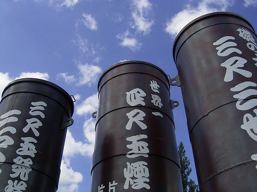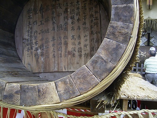 | 上の写真の木製花火筒は復刻版で、町の有志が住宅の柱材を供出してつくったそうですが、これも神社に奉納する「筒引き」の際には木遣りで送られたのでしょう。面白いのは、この巨大な筒がソリに載っているところ。9月の祭りの時期に雪が積もってるわけでもないのに、なぜ台車ではなくソリなのか?(やっぱり雪国の発想なのか、と思ったけど、南雲さんどうでしょう?) 地面の上を引きずるのはかなり大変ですよね、と言うと、玉皮の社長は「重くなくちゃダメなんですよ」とおっしゃるのでした。ズリズリと重いものを町のみんなが力を合わせて引く、その手応えがなくちゃダメなんだ、と。それでこそ高揚感があるのだ、と。なんだか諏訪大社の御柱祭を思わせるものがあります。 | ||||||||||||||||