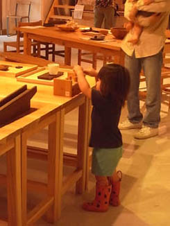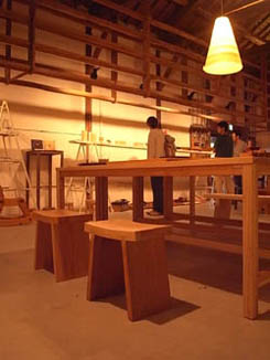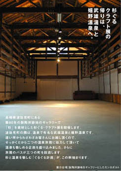| 杉ぐるバスの次なる目的地は隣町にある長崎県は波佐見にあるギャラリー、モンネ・ポルト(http://monne-porte.com)です。築80年の製陶所跡地を利用した趣のあるギャラリーでは「杉ぐる・クラフト展」と題して、九州の木工作家18組による杉をテーマにした作品の展示会が行われました。家具、器、おもちゃ、などなど2年前の杉モノ・デザイン展のときにはなかった作品も加わり、見ごたえのある展示となりました。 | |||||||||||||||