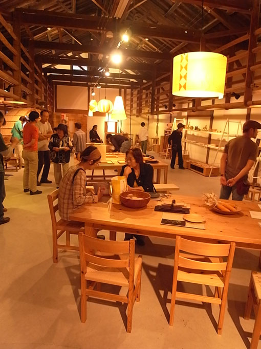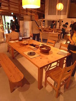 | 杉ぐるバスの2つめの停車駅である旅館大村屋さんでは、初日の夜にイベント関係者の懇親会が設けられました。今回のイベントで初めてお会いする方々とお話したり、2年前の杉モノ・デザイン展以来のご縁のある作家さんたちとは再会を喜び合い、お互いの近況報告をして交流を深めたりと、和気あいあいとした空気に包まれました。そこにいるみんなが楽しんでいるということがこの上なく心地よい宴となりました。 | |||||||||||||||