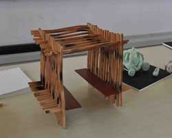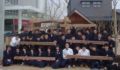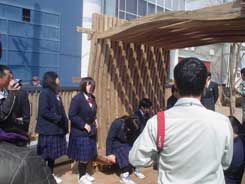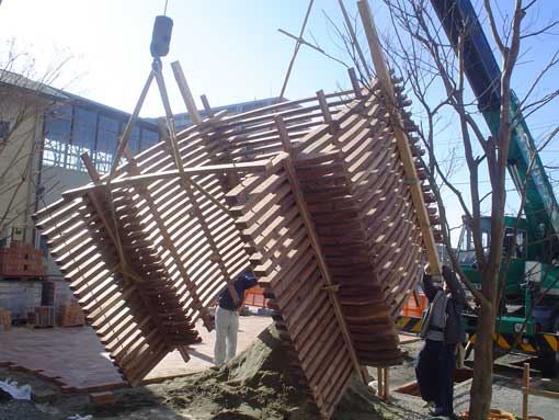 | 実は、この課外授業は、頓挫しそうだった。私は途中からの参加だったが、どうも、予算がないらしい!!途中から声をかけられるのは、大抵、予算の話だろう!模型を見せられ、小野寺さんのメールで図面がきて、「見積を…」。「○○○万円です」「あ〜、やっぱりね」 本当に恐ろしい予算でした。○○分の1しかないんです。というか、当初から実物を製作する話はなかったようだ。 |
