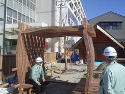 そこに登場したのが、M課長です。日向のまちづくりで体得した「フレミングの左手の法則」を使って、マジックのように難題を解決したのです。M課長は、常に左手をくるくると回しているのですぐにわかると思います。いや!本当に見事でした。 部材を作り出すのも大変、予算も大変。でも、組み立てるのも大変なんです。できてしまえば、そんなことは、誰もほめてはくれませんが…。 |