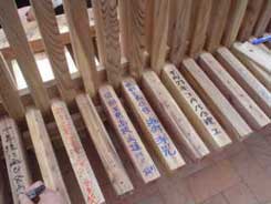 | 今回の作業は、形も変わっていますので、非常にギャラリーが多く「これは何??」と尋ねる方がいっぱいました。叔父が、ギャラリーの話を立ち聞きしたそうで「これは、すごい!」「実に丁寧な仕事をしちょる」こんな会話に、叔父は、本当にうれしかったみたいで「これは甥っ子が作ったもので…」と思わず声を出したそうです。 | ||||||||||||||||