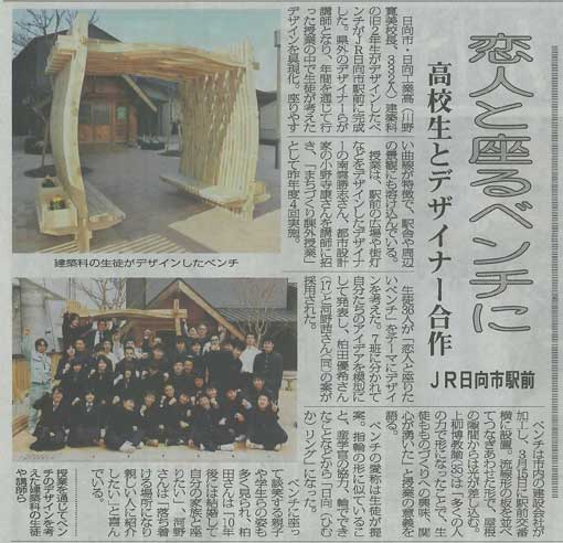 | 私も日向工業高校建築科のOBとして一言。公共物を学生にデザインさせて実際に設置するなんてどこのまちでもやっていることではないですよ。このひむかリングをしっかり、見守ることと自分たちの行ったプロジェクトに誇りを持ってこれからのモノづくりの原点にしてください。 | ||||||||||||||||