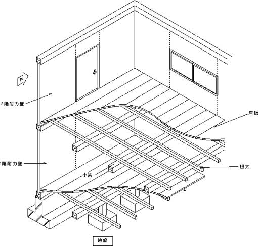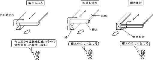 なお、屋根の場合は根太を垂木に読み替えればおなじことです。 |