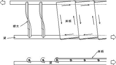 | Fig.3-35 力の流れと根太のねじれ | |||||||||||||||||||