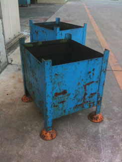 | 1.鉄板をL字に曲げたスツール(1-4ヨシモトポール) | 2.スチール端材用ゴミ箱 | |||||||||||||||