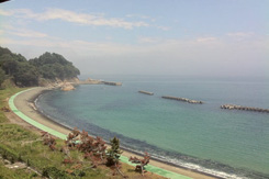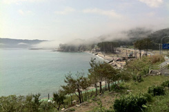 | さんずろ屋から見る海岸の風景。いつもは海水浴場。 | 同じく南側を見る。この辺は靄が多いらしい | |||||||||||||||