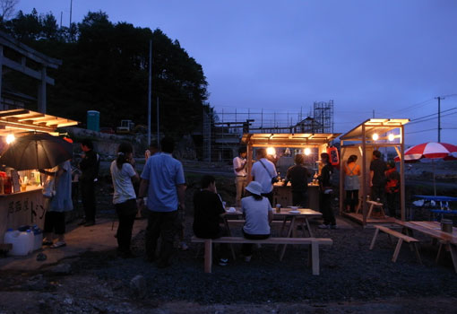 ● あれから10日が経つ。徐々にお客さんは増えているという。ほんの小さなお手伝いであったが、これをひとつのきっかけに大槌の皆さんが共にに将来を語り、未来を描くそんな場に成長していくことを心から願っている。この場はみんなで作ったみんなのもの。ぜひこの場を多くの皆さんが利用して欲しい。 |
