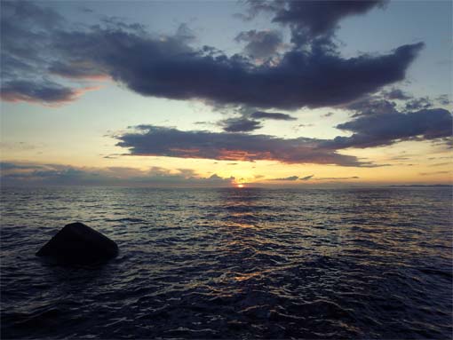 高浜の世間遺産:広大な海に沈みゆく夕日 |