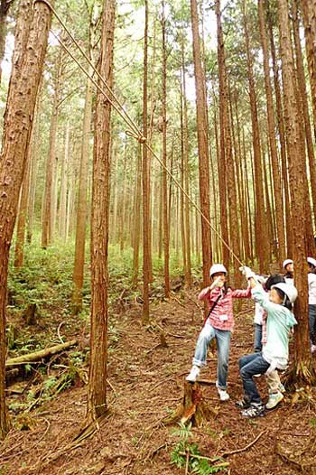 | 子供たちと一緒に間伐を行いました。間伐した丸太はさたけん家で使われます。 | |||||||||||||||