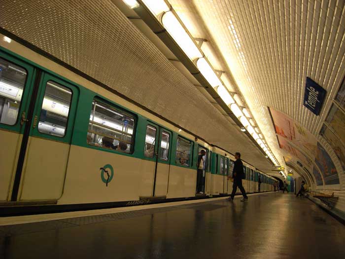 | パリ地下鉄3号線Temple駅。女性の肌が美しく見える照明装置への取り換え工事が進んでいる。すべての地下鉄駅の改良工事費用は、20年間で総額4.5億ユーロを投資している。 | |||||||||||||||