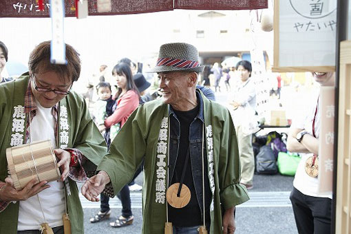 | そして当日。近年ない好天に恵まれた。各社の商品が運び込まれ、次々に陳列されていく・・。「なんか・・いいかも・・」単純にそう感じた。お揃いのはっぴを着て、準備は整った。太鼓の音が鳴り響き、人が寄ってくる。「これ、いいね」と、お客様が商品を手に取り、笑顔で「これ、ください」・・。そう、この声が聞きたかったのだ。作った商品が売れる。普段から売ってはいるが、それは小売店や代理店にであり、お客様と向き合って直接売ることは少ない。「これ、ください」。いい響きだ。素直に「ありがとうございます。」と声がでる。気づくと屋台屋全体に人だかり。全体として成功と木製品の需要を確信した瞬間だった。二日目には、売り方や見せ方も変わり、皆が進化していた。 | ||||||||||||||||