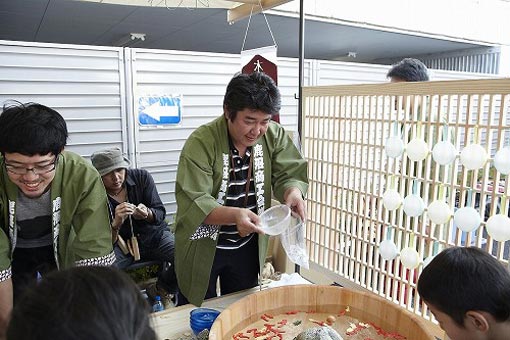 | デザイナーの方々のデザイン・雰囲気作りに加え、皆が大きな声を出し屋台屋全体を盛り上げ、買っていただいたお客様にお礼の気持ちを直接伝える。 | ||||||||||||||||