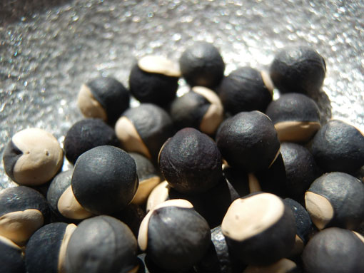 | 猛暑の夏、緑のカーテンをつくろうと蒔いたフウセンカズラが今年もたくさんの実をつけました。 風船をパリッと割ると、中から3粒の黒い種。そこに白いハートのマークがあるのがなんともいえず可愛いのです。 「ハートの種をあげる」とプレゼントすると、自分もうれしくなります。 |