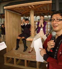 | 日向の若き建築家3人娘。コンセプトは『えんどう豆』をイメージしていたようですが、出来上がったものは『そら豆』!? しかし、色味やフォルムは大満足のようでした。 受賞時のコメントで「次はグランプリを獲る!!」と言ってました。 この力強さに日向の明るい未来を垣間見ました。 |