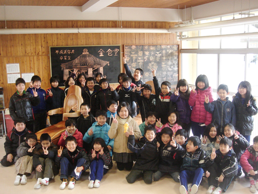 | 野田小学校3年生みんなと安田圭沙さん(photo/和田康之) | ||||||||||||||||