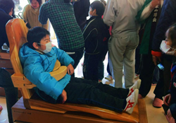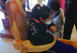 | 「だっこのいす」にすわる野田小学校3年生(photo/南雲勝志) | ||||||||||||||||