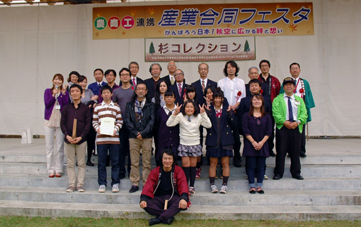 | 杉コレ2011in 日向 表彰式後、受賞者・審査員・主催者など関係者みんなで。(以上、photo/内田洋行 下妻賢司) | ||||||||||||||||