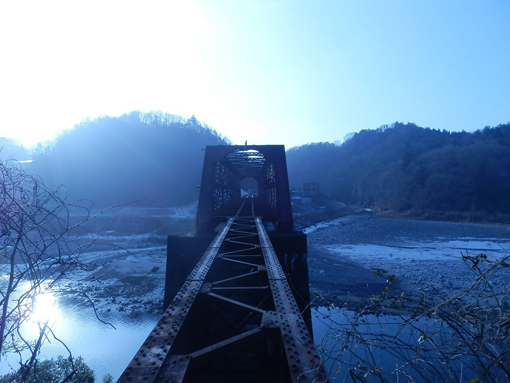 | 1月。父の葬儀のすぐあとに出張で訪れた岐阜県、付知川。 木材の運搬で活躍した恵那鉄道は昭和50年代に廃線となってしまいましたが、鉄橋だけは今も美しい姿を残していました。ずーっと向こうにレールがつながっているような、そんな気がしました。 |