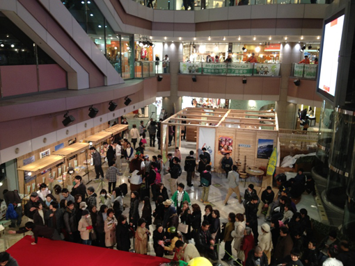| さて、イベントの方はどうだったかと言えば、大盛況だったと言っていいと思います。これは展示の善し悪しだけではなく、アーチストやアイドルを使ったステージイベントの影響も大きかったと思いますが、来てくれた来場者の反応もとても良かったようですし、いつもは無い杉の空間で楽しい時間を過ごす人々であふれ返っていました。河野宮崎県知事もステージにて自ら県のアピール。会場の貸主であるIMZの社長と面談した時に、オシャレな展示だと褒められたらしく、ご満悦でした。 | |||||||||||||||||||