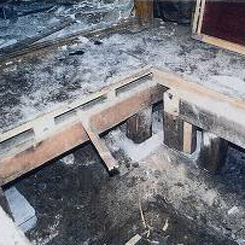| 1階床はフローリング張りとなっており、一般的な床組みで構成されていた。 基礎は布基礎で構成されており、束を受けるためにコンクリートブロックが設置されていた。 |