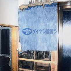居間部分の内壁においては、胴縁の上に遮音シートが張られており、その上にベニヤ、そしてクロスが張られていた。 | |||||||||||||||
