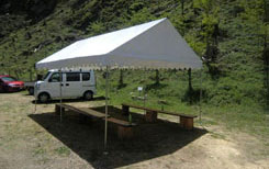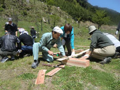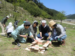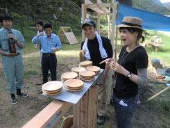 | そして、ツアー三部作のラストを飾るのが今回の「ヘビー級」。 今回の目玉企画は、吉野材で作る木のテントとサクラ植樹体験です。木材を扱う難しさ、木を植える大変さを楽しく体験してもらうのが目的です。 | ||||||||||||||||||