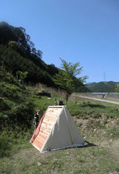 | この地に「桜ゲストハウス」を建てる計画があります。 桜ゲストハウスに山と街の人が集い、満開の千本桜を愛でながら、交流する「場」を築く事を、吉野やままちの大きな目標の一つにしています。 このプロジェクトのスタートとして、現場事務所を建てよう!という事で、今回、木のテントを制作する事にしました。 | ||||||||||||||||||
