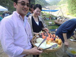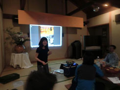| 日が暮れて、宿に移動。吉野山の旅館、花夢花夢さんでお世話になりました。ここで大問題が発生!やままち活動のプレゼンをやろうとプロジェクターを準備していたのですが、肝心のパソコンを忘れてしまったのでした…。ですが、吉野山の葛屋さん、中井春風堂の中井孝嘉さんが突然のお願いにも関わらず、パソコンで持ってきてくれました。しかも、パワーポイントをインストールしてから!本当にありがたく、吉野の仲間のすばらしさ、ありがたさを実感しました。 | ||||||||||||||||||
