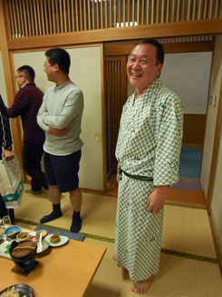 | 夜の全国大会は美味しいお酒をお供に、各支部の活動報告。さすがスギダラの皆さんだけあって、「ハンパね〜盛り上がり」!因みに、夕食会場に一人だけ浴衣姿のおっさんがいましたが、それは「温泉のご飯は浴衣が正装」だと信じて疑わない私でした。 | ||||||||||||||||||