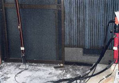 bP1測点はbQのところと同じで、このbP1測点の特徴としては、外壁のラスモルタルをほとんど撤去し、パラペットのモルタルをも取り除いている点にある。 |