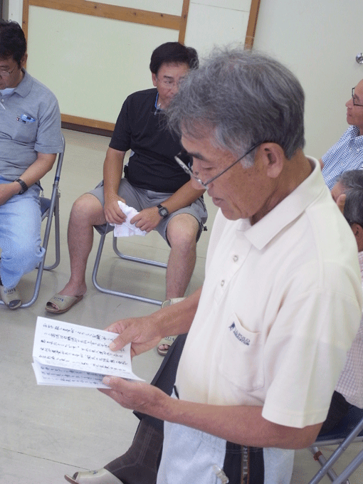 天草フィールドワーク2012開会宣言を読み上げる筆者 |