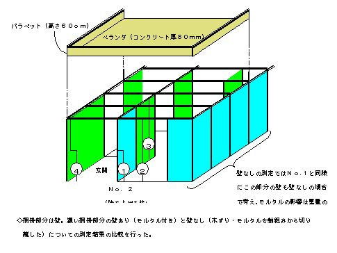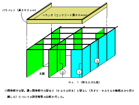 | 《ベランダ下隅柱(測定番号No.1)の測定地点と測定状況》 | ||||||||||||||||