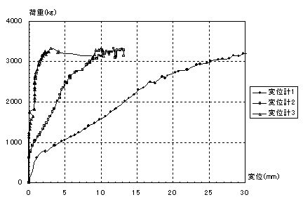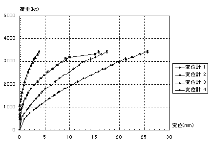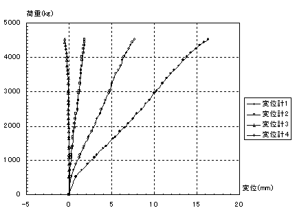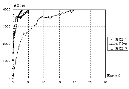 | 測定番号No.1のL字型に壁あり(モルタル付き)のときの変位−荷重関係 | ||||||||||||||||