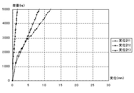 | 測定番号No.1のL字型に壁なしのときの変位−荷重関係 | ||||||||||||||||