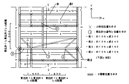 | 測定番号No.1の柱の測定位置(変位計1〜3) | ||||||||||||||||
