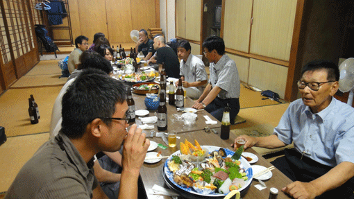 | 全くの異邦人である我々を歓迎してくださった地元のみなさんとの楽しい宴も終わり、恒例の自己紹介とスギ談義が始まった。 「この地域はどうなるのか・・・?」 「我々、スギダラは何が出来るのか・・・?」 「何のために、そこまでするのか・・・?」 スギダラツアーで毎回語ってきたテーマでもある。 苦しくても地域のために自分たちが出来るコト。せずにはいられないコト。 未だに答えは見つかっていないが、その基本的なコトを思い出させ、考えさせられるのがスギダラツアーである。 |