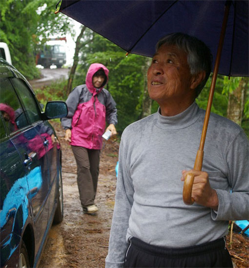 | スギダラのツアーで長良杉ツアーをやった時だった。(参照:月刊杉59号特集)ツアー二日目、あいにくの雨、親和木材の古田社長が言った「若杉さん、あいにく雨が降っています。山は標高が高く、傾斜もきつい場所です、林道も車一台分。この雨だと少々厳しいですね〜どうしますか?」 「そうですか〜〜、しかし、山の方々はお待ちになっているんでしょう?」 「はい、皆さんが来られるので準備しています。」 「それじゃ、行きましょうよ!」と現地に向かった。 思った以上の厳しい林道だった。滑ったら終わり、断崖と言っても良いぐらいの厳しい斜面に植林されている。しかも、標高が高くて杉の生長が遅いので思った以上に径がない、おまけに、管理が大変なので、お世辞にも美しい山ではない。そこの現場へ1時間かけて向かった、恐ろしくて脚がすくんだ。 少し開けた、場所には、木を切り出す為の重機と大型トラック。 僕らの乗用車ですら、危ない感じなのに、この大型トラックで運び出すこと、いやそれよりも、この急斜面から木材を切り出すこと、まさに命が掛かっている。あまりの厳しい環境、そしてあまりにも、少ない報酬。この厳しさの中で杉を育て供給すること。「何の為に?何の為に?何を思って?」 シトシト降る雨、そして現れた私服姿の山師の親分、渡辺さんは終止、ニコニコしていた。 古田社長がこう言った「この山を管理し材料を出してくれている方です。今日の皆さんが来られる為に、林道を整備し安全に来れるようにしてくれました。どうもありがとう御座います。」 厳しい山、厳しい環境、そして杉。彼らは代々、同じことを思い、同じことをしてきた。杉はずっとここに佇んでいた。賃金が下がろうが、山を思い、仕事を愛し、家族を思い、続けてきたのだ。 変わってしまったのは、僕たち。この人達はお金という価値を超え、仕事を愛している。しかも多くは語らず、僕らの為に悦んで休みというのに、仕事をしていてくれるのだ。 「何の為に、何の為に、何を思って?」 「若杉さん、渡辺さんは、今日皆さんが来られるのを、とても悦んでいました。来て頂いてありがとう御座います。こんな山奥で仕事をしていることを、見に来てくれる。知ろうとしてくれていることに感謝していました。ありがとう御座いました。」 「いえいえ、こちらこそ。むしろお礼を言わなければならないのは、こちらです。」 僕らは、雨の中一緒に記念撮影をし、お礼を言って、山を去った。 とても嬉しそうだった。僕らも、何か暖かいものが込み上げてきた。 |