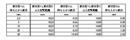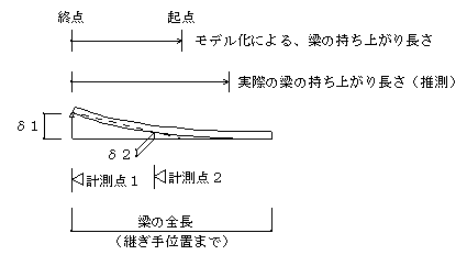 | 梁の持ち上がり起点は計測点1での変位δ1と持ち上がる梁に取り付けた計測点2での変位δ2をつないで延長させた点とする。 | ||||||||||||||||