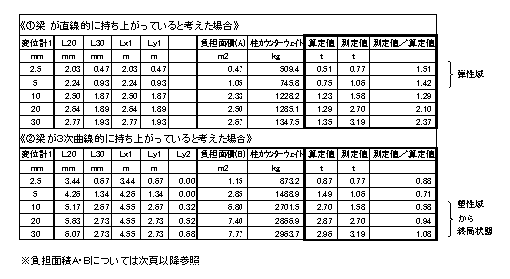| □測定番号No.1の測定値と負担面積から求めた柱カウンターウェイトについての比較 | ||||||||||||||||