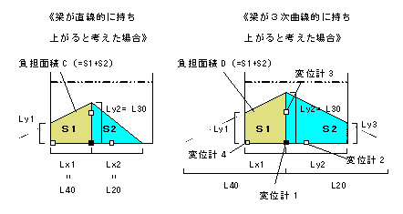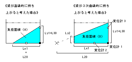| −直線的に梁が持ち上がると考えた場合− | ||||||||||||||||