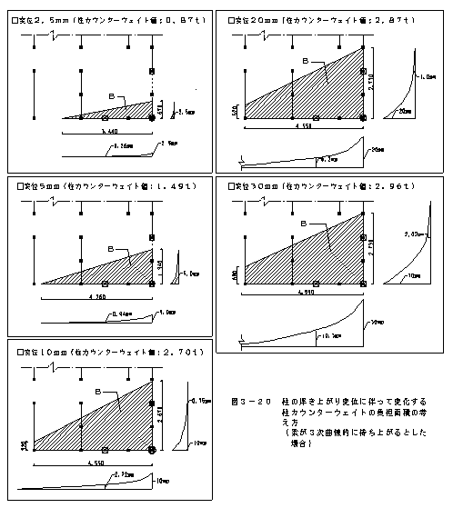 | 《測定番号No.2(側柱の場合)の柱カウンターウェイトの負担面積の移り変わり(2)》 | ||||||||||||||||