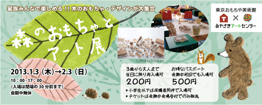 | 森のおもちゃとアート展。チラシ(PDF)はみやざきアートセンターHP内より、こちらをダウンロードしてください。 | ||||||||||||||||