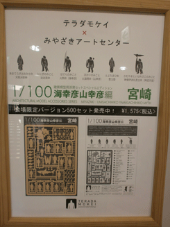 | 石田さんに紹介したついでにこのようなお願いをした。寺田さんは建築家・デザイナー・モデラー・料理研究家として活動されていて、最近ではテラダモケイとして、1/100建築模型用添景をデザインされている。テラダモケイの「添景」でぜひ宮崎バージョンを!!これには、石田さんも大乗り気で・・・。 寺田さんが、宮崎入りして事前調査をしたときは、県庁や平和台公園などを見ていただいた。 |
