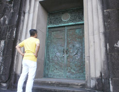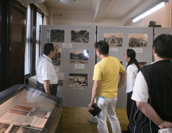 | 宮崎県庁を取材中の寺田さん | 平和台公園の神武天皇お船出の門も見ていただいた | |||||||||||||||