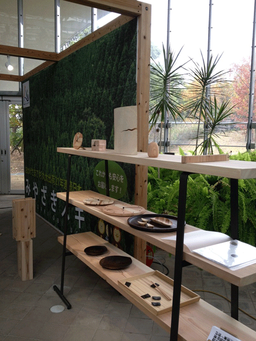 | 「Let's Timberize! in 九州」にて展示した、杉の木クラフトの杉食器やグッズ。 | ||||||||||||||||