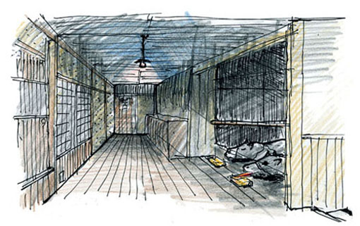 ひとつだけ、夜、皆が寝静まってから便所に行くのだけは苦手でした。階段をこわごわ下り、玄関を右手に見ながらまっすぐ進むと突き当たりが便所です。でも昔は夜電気をすべて消灯したので真っ暗でした。手探りでプルスイッチを探し当て、ようやく電気を付けてもせいぜい5ワット位の電球でしたから薄暗いのです。そこを抜き足差し足で次の便所の扉まで進みます。なぜ抜き足差し足かというと、玄関と牛舎は壁で仕切られていたものの、廊下側は一体になっていて、牛は胴体こそ牛舎で横たわっているのですが、巨大な頭だけは廊下と同じ高さに乗っていて、こちら側を向いて寝ているのです。その光景が薄暗い中でとても怖く、牛を起こさないようそっと静かに歩く必要があったのです。運が良ければ、用を足して何事もなく二階に戻ることが出来たのですが、運悪く気配を感じた牛が、少し涙の溜まった瞼をゆっくり開けるとモウたまりません。口を少し上に向け、低い声で「モ〜〜〜モ〜〜〜〜モ〜〜〜〜〜。」と鳴くのです。その瞬間、心臓が飛び出るほどドッっとするのです。そして目を開けた牛は必ずといっていいほど目の前に置いてある岩塩にながーい舌を伸ばしてペロりと舐めます。その時のジャリ、ジャリという音を聞くと本当におしっこをちびりそうになったものです。