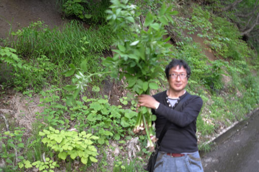 | ウドを大量に抱えた若杉さん。どう? | |||